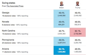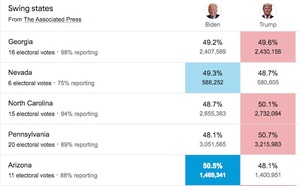 State of play in remaining swing states in the US Presidential election as of 4pm
