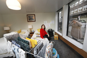 At the window is Niamh Lambe, Family Services Manager, Focus Ireland who hopes the installation will help drive awareness and encourage donations.