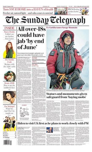 The Sunday Telegraph reports that everyone aged 18 and over in the UK should be vaccinated by the end of June.