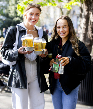 Why are people so ecstatic about paying 6 euro for a pint of lager so they can sit on a bench with it when they can buy a can of the same lager for 2 euro and sit on a bench with it? Is it the plastic cup? That can also be arranged.