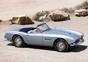 Behold: the 1957 BMW 507 Series II. Launched at the 1955 Frankfurt Auto Show, only 252 of these jet age roadsters were ever made and – on account of a hand-finished aluminium body – no two were exactly the same.