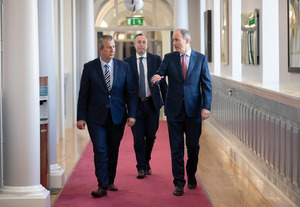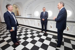 Taoiseach Micheál Martin hosts Democratic Unionist Party Leader Edwin Poots and DUP MLA Paul Given.