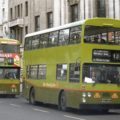 Parliament Street, Dublin, March 1980 with the first traffic alteration to the thoroughfare as two CIÉ Atlantean buses negotiate its new contraflow bus lane. pic.twitter.com/a6mXOhARY2