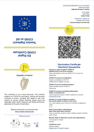 Fully vaccinated people will begin receiving their EU Digital Covid certificates from today. 1 million certs will begin arriving in inboxes of people who were vaccinated via the HSE portal and 1 million certs will be posted to those who were vaccinated by GPS @rtenews pic.twitter.com/xzP2Csozhu