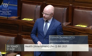 Minister for Health Stephen Donnelly addresses Senators in his native doublespeak on measures that will deny access to pubs and restaurants for the unvaxxed and in language.