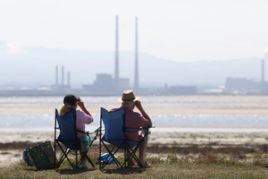 Industrial chimney stack enthusiasts take in the sun and Dublin’s pipe dream view.