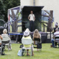 The elegantly-attired came to watch poet Jean O Brien (top) and musician Farah Elle (above) performing from a van on the grounds of Laois Music Centre as part of Words Move by Festival in a Van and Poetry Ireland, who have put together ten poets and ten singer-songwriters to tour ten counties this Summer.