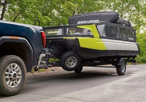 Behold: the Sea-Doo Switch Pontoon – a nifty, jet-propelled watercraft with handlebar steering for high manoeuvrability and a deck that can be reconfigured for fishing, watersports or whatever kind of floaty shenanigans you’re at.