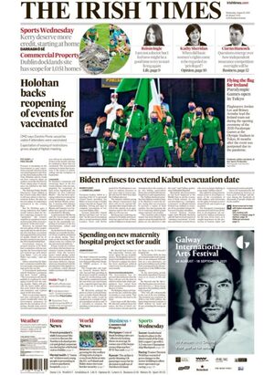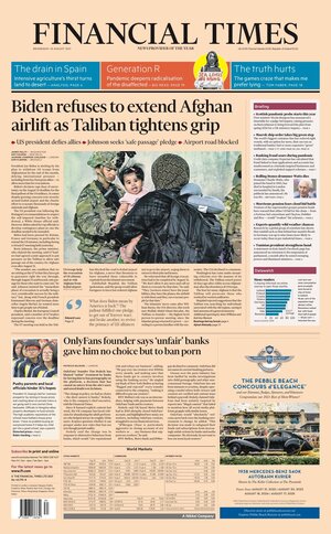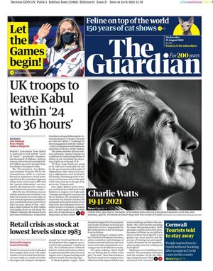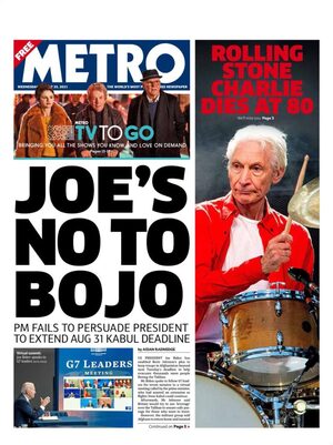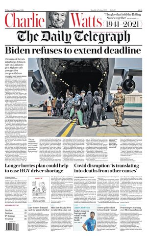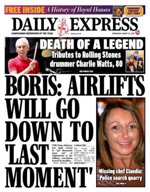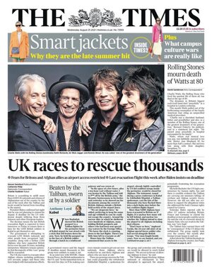 On several newspaper front pages the death of a rock star gets equal prominence as the frantic withdrawal of endangered people in Kabul.