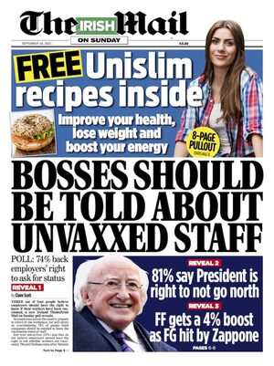 Disgusting ptopaganda from the Irish Mail on Sunday. Of course a key underlying function of corporate media is to try to mold public opinion according to the vested interests of elites and could there be a more brazenly transparent example of this than declaring “BOSSES SHOULD BE TOLD ABOUT UNVAXXED STAFF” (which would be contrary to Irish law) off the back of their own dodgy opinion poll?