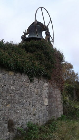 Funnily enough, this was not one of the lessons in altar boy training. So here I am, looking at the bell and chain. There was a low wall around the base, now extended to the top. And I thought if I grab the chain as high as I can and then pull, it will work. So to get as high as I could I clambered up this little wall. I reached high, grabbed the chain, and jumped.