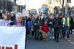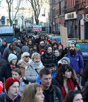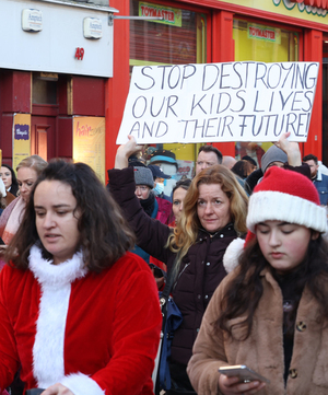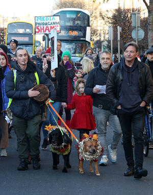Protesters marching from the Department of Education to Smithfield Square via Henry Street against covid restrictions and measures, including the vaccination of children.