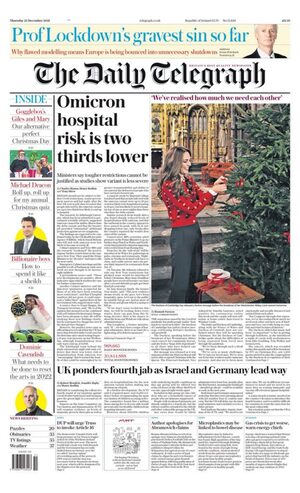 Its fairly interesting that every single UK paper headlined with Omnicron’s vast drop in hospitalizations. But not a single Irish paper did…