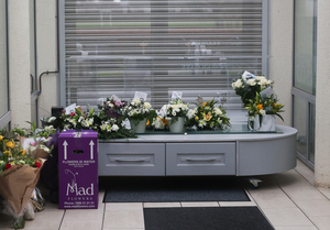 Flowers left outside Newlands Cross Crematorium, where a Hindu funeral is taking place for Shane O’Connor, the son of musicians Sinead O’Connor and Donal Lunny, who died over the weekend aged 17.