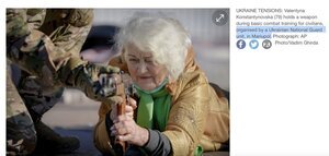 Amazing. Czech media reporting that Granny Valentyna’s photo op was organized by the neo-Nazi Azov Battalion. Meaning a bonafide Nazi propaganda tool is the darling of the Angloid media elites. Truly the face of Ukrainian resistance.https://t.co/Gis690ivAK pic.twitter.com/hYVdnd2zBe