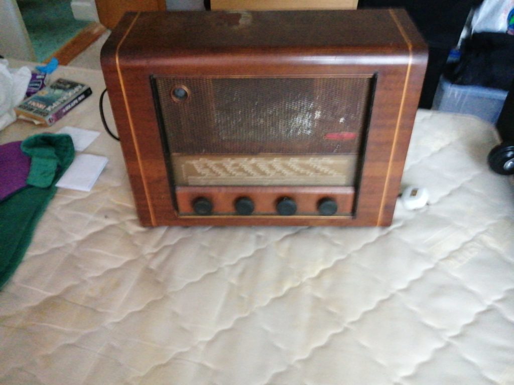 An old valve set, it sat on top of the fridge in our house in Dublin, then later in the new house in the town where I still live in Kildare. I understand it sat in my Dad’s house in Cork when he was a lad growing up, but I am not sure if it sat atop his fridge, though. That lore has not been shared.