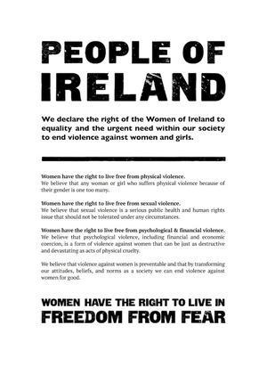 The Proclamation is based on the UN and Council of Europe’s Conventions, signed by Ireland, which enshrine the rights of women to live with freedom from fear. A personal testimony was delivered at the launch by Charlene Masterson, a survivor of violent abuse. businesses should contact stephanie@rethinkireland.ie