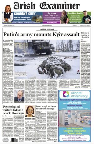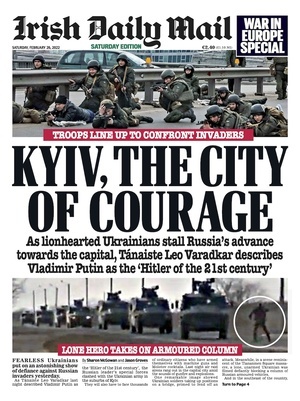 The brutal Russian invasion of Ukraine casts a great gloom over Europe. Yet I fear that BANNER HEADLINES proclaiming the Courage, Resolution and Defiance of the underequipped and militarily outnumbered Ukrainian defence forces are raising false hopes among readers of these newspapers. The military outcome of the Russian brutal onslaught is obvious – the Russians are going to overwhelm Ukraine and then ‘invite’ the defeated government to ‘negotiate’ a peace deal. So I recommend less banner headlines and more attention to the political outcome of this invasion. A small country like Ireland can aid Ukrainian refugees and send, through the Red Cross and other agencies, medical and other assistance to the invaded country.