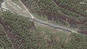 A massive Russian military convoy consisting of hundreds of tanks, trucks, towed artillery pieces and support vehicles has been pictured slowly making its way toward Kyiv. Satellite images provided by the US company Maxar Technologies show the convoy spanning a distance of about 40 miles (65 kilometers).