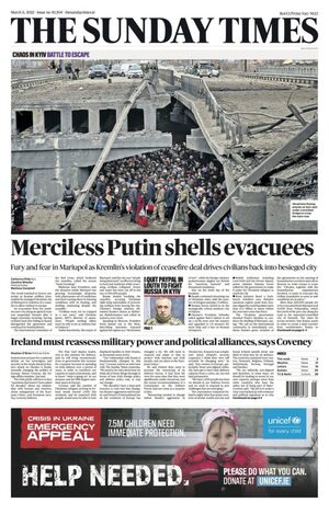 That Irish Daily Mail front page story “Putin shelling fleeing women and children” stinks to high heavens in my opinion. It doesn’t add up from a strategic point of view. The objective of Russian forces is to overpower Ukrainian forces in the region. Facilitating the evacuation of citizens from those cities makes that objective easier for them. The Ukrainian forces know that Russians are trying to gain the upper hand in a propaganda war by attempting to minimise civilian deaths. Preventing civilians from leaving is in the Ukrainian forces’ strategic interests as cynical as it is. The majority of Volnovakha and half of Mariupol are of Russian ethnicity, by the way.