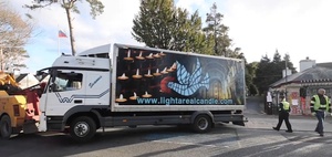 The driver of the truck, Co Leitrim businessman Desmond Wisley, was arrested for criminal damage following the incident on Orwell Road in south Dublin. There were no injuries.