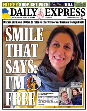 Is she free? It was only yesterday it was in the papers suddenly again about how she should be released from Iran, et presto! Out and about colour co-ordinated!