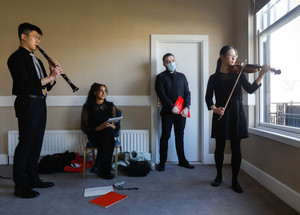Participants warm-up in dramatic fashion ahead of performing in ‘The Dramatic Cup’ at Feis Ceoil 2022 this afternoon.