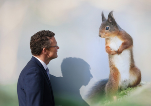 Jimmy McDonnell with junior minister Patrick O’Donovan this morning and his winning red squiirrel