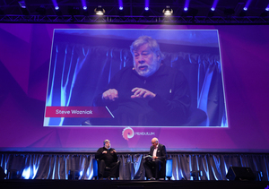 Five times Olympic gold medalist Sir Steve Redgrave and Co-Founder of Apple Steve Wozniak speaking at the second day of the Pendulum Summit.
