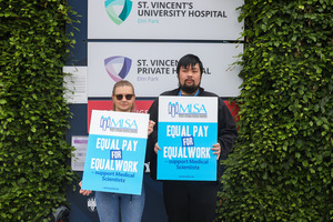 Medical Laboratory Scientists strike outside St. Vincent’s Hospital. Over 2,000 medical scientists across Ireland are taking part in industrial action today, as they seek resolution for a two-decade pay dispute.