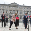 Above from left: Shadow Secretary of State for Northern Ireland Peter Kyle MP, Labour Leader Ivana Bacik, and Leader of the UK Labour Party Keir Starmer walk beside St. Stephen’s Green, during Mr Starmer’s visit to Ireland