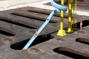 Wet ‘n’ Wild: a miniature installation (complete with audio) at the 2010 Fame Festival in Grottaglie, Italy by UK artist Slinkachu.