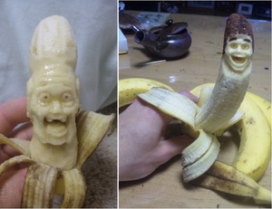 He Works Primarily In The Medium Of The Nana Niall Murphy at 10:24 am April 14, 2011 They’re moist and sticky, a little bit icky and strangely dicky. Sculptures carved from ripe bananas by Japanese artist y_yamaden. Lots more here. via FacebookTwitterPinterest