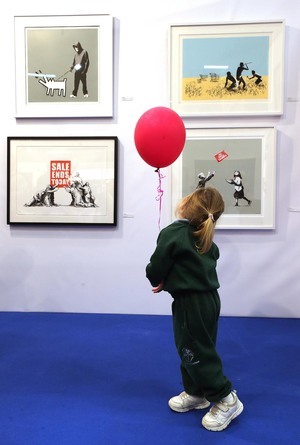 Twelve Banksy pieces will be on display ranging from €10,850 for I Fought The Law to an unsigned print of Girl With A Balloon valued at €120,000, along with works by Andy Warhol and Damien Hirst.