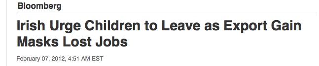 Irish Urge Children to Leave as Export Gain Masks Lost Jobs (Bloomberg)