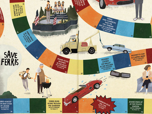 A fully playable boardgame version of Ferris Bueller’s Day Off by the Argentine artist Maxim Dalton for the Crazy For Cult John Hughes Tribute exhibition at Gallery 1988, Santa Monica, CA.
