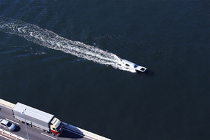 The undertow of the boat, which travels back and forth between Azuma-bashi Bridge and Sakura-bashi Bridge, opened up the water like a zipper to connect the other side of the river. (I hoped) that it would change the way we look at the city landscape.