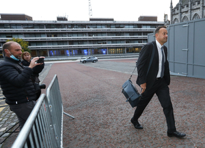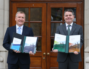 Outside Government Buildings before presenting Budget 2022 to Cabinet are Minister for Public Expenditure and Reform Michael McGrath (left) and Minister for Finance Paschal Donohoe