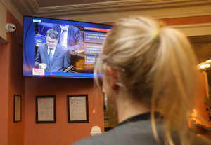 At top: Watching the Budget 2022 address in Buswell’s Hotel, Dublin 2