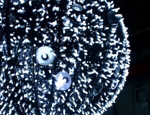 Artificial Moon by Beijing-based artist Wang Yuyang, is a 4m diameter sphere studded with hundreds of strategically-placed fluorescent bulbs mimicking craters and other surface features of the moon.