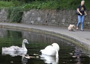 Warning signs to canines and their owners from Dublin City Council after a swan attacked and killed a dog at the park’s duck pond on Saturday of last week.