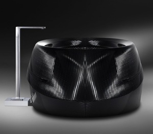 The exterior is finished in hand-sanded, polished raw carbon fibre that exposes the weave and makes it especially resistant to chips and scratches on the road.
