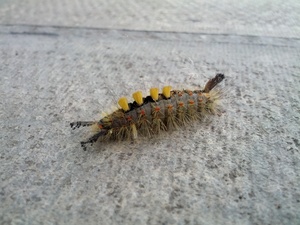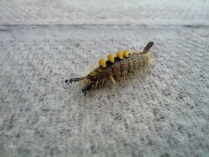 Spotted on the Samuel Beckett Bridge, Dublin an hour ago. The caterpillar of a Rusty Tussock Moth. Must go through hair spray like crazy.