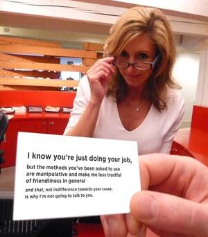 Fed up with aggressive charity canvassers in their neighborhood, creative workers at ad firmĀ Wieden + Kennedy (makers of the infamousĀ Old Spice commercials) have come up with this clever card.