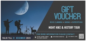 I have three types available: Introduction To Rock Climbing: €65; Wicklow Weekend Expeditions: €75 and Night Hike: €25.
