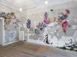Collaged installations by Berlin-based American artist Claire Börsch: fantastical, dreamlike ecosystems summoned up by amorphous swathes of flora, fauna, human figures and gemstones of which she tells Colossal:
