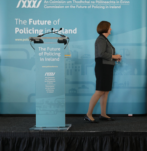 From top: The Commission on the Future of Policing in Ireland; Garda Inspectorate Kathleen O’Toole speaking at the publication of the commission’s report today; and the report