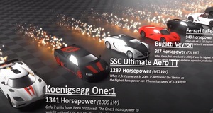 A collaboration between Reigarw Comparisons and Metaball Studios visualising the comparative brake horsepowers of everything from the 1894 Benz Velo to the Thrust SSC rocket car.