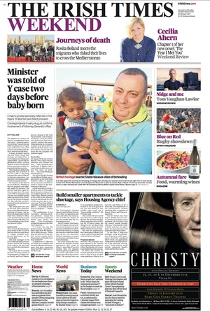 De Thursday Papers Admin at 11:20 pm October 8, 2014 MORE to folly. Thanks Nick Sutton (UK covers), Meliosa Fitzgibbon, Enda Cunningham, Enda Bolger and Pauline Hallissey. Covers to broadsheet@broadsheet.ie FacebookTwitterPinterest