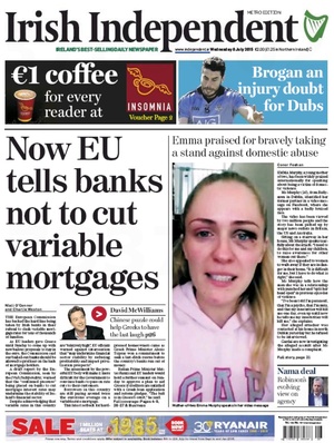 Thanks Tanya O’Neill (The Westmeath Examiner and The Connaught Telegraph); Enda Bolger (The Irish Sun); Pamela McCarthy (The irish Examiner); Nick Sutton (UK covers)